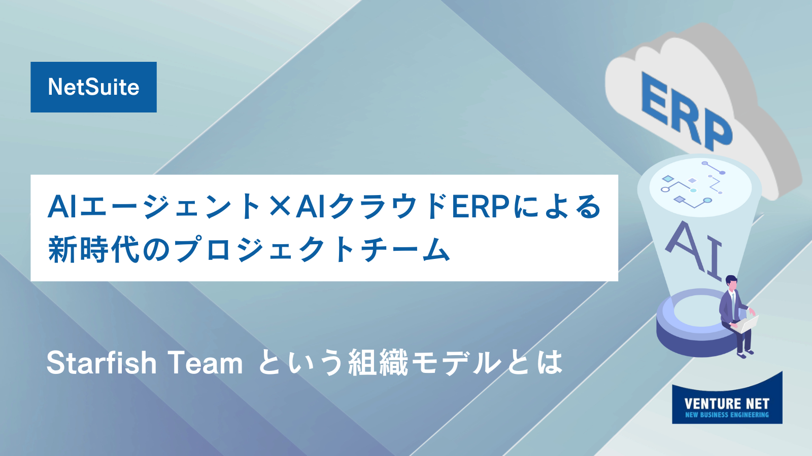 ベンチャーネットでは、このStarfish Teamの考え方を「THE STARFISH」 と名づけ、AIエージェント × AIクラウドERP時代の新しいプロジェクトチーム/組織設計のフレームワークとして展開していきます。